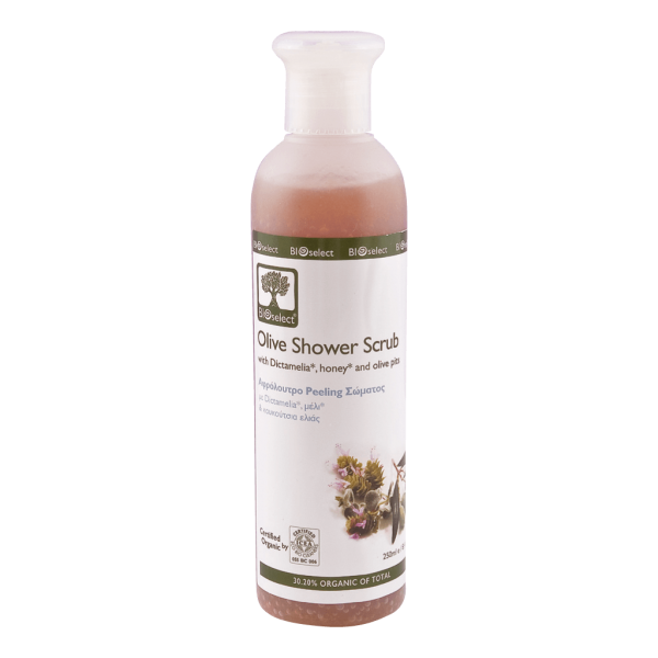 Organic olive shower gel scrub is an exfoliating body shower with olive kernel beads to remove dead skin cells and leave an amazing sensation of freshness. Contains Dictamelia, a unique patented combination of extra virgin olive oil and the Dictamo herb – renowned in Greece since ancient times for its amazing health benefits and healing properties to help rejuvenate the skin and body. Olive kernel and honey soften, tonify and revitalise the skin leaving it supple and radiant. Certified by: AIAB-ICEA.