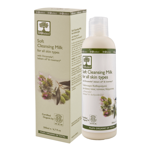 Organic mild cleansing milk for all skin types. Contains Dictamelia, a unique patented combination of extra virgin olive oil and the Dictamo herb – renowned in Greece since ancient times for its amazing health benefits and healing properties to help rejuvenate the skin and body. Natural Balsam and rosemary extracts remove make-up and impurities from the skin, whilst softening and relaxing. Certified by: AIAB-ICEA.